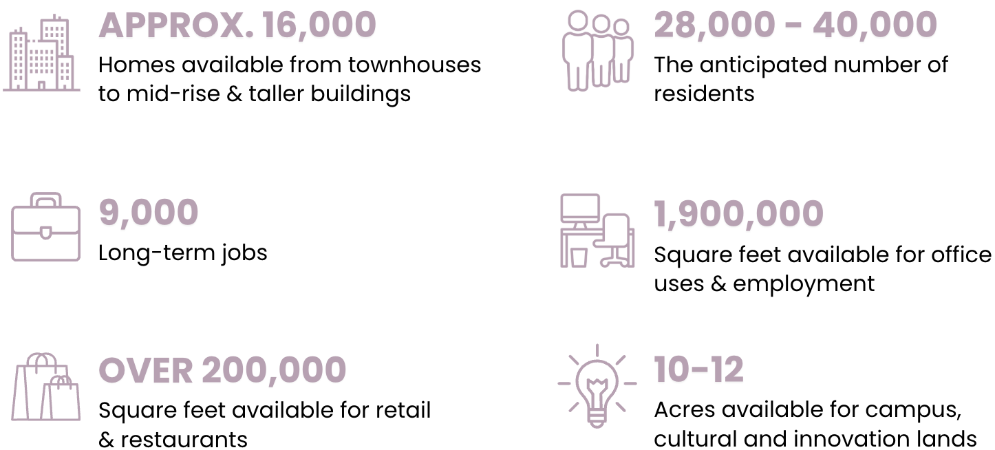 The Sustainability Centre promotes global change through research, innovation, and collaboration, focusing on low-impact living with green infrastructure, district energy, and electric vehicle systems. It aims to meet emissions and waste reduction goals, offering a healthier lifestyle with cleaner air, walkable amenities, and a closer connection to nature.